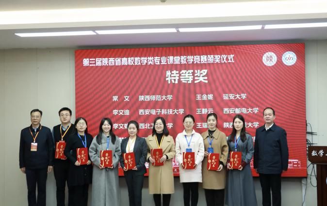 2025年12月7日,第三届陕西省高等学校数学类专业课堂教学竞赛颁奖仪式在陕西师范大学长安校区举行,我院青年教师王金妮、石美丽凭借深厚的专业素养、精湛的教学技艺和创新的教学设计脱颖而出,分别荣获特等奖与一等奖,学院以严谨的组织保障和优异的参赛成效获评“优秀组织奖”,为学校赢得了崇高荣誉。王金妮老师作为本次竞赛特等奖代表,受邀在颁奖仪式上进行了《调和级数》教学示范课展示,其生动的课堂呈现与新颖的教学设计获得在场专家与同行的高度认可。