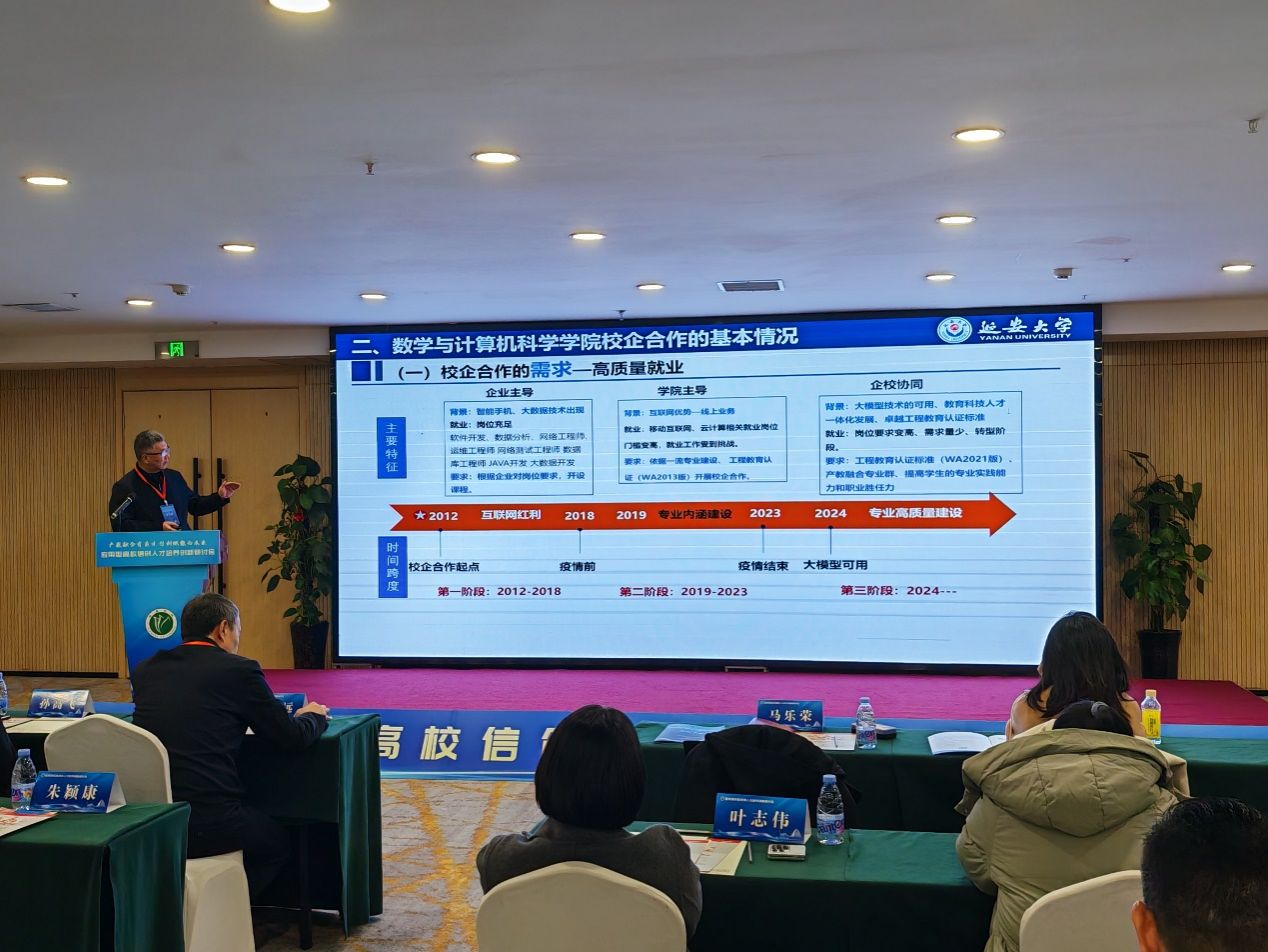 及学院的基本情况,随后系统阐述了学院在企校协同育人方面的现有基础、已取得的阶段性成果、面临的新挑战以及相应的新探索与实践。报告重点介绍了学院如何将行业真实项目有机融入教学全过程,以有效提升学生工程实践与创新能力的典型做法,引发了与会专家的广泛关注与积极讨论。