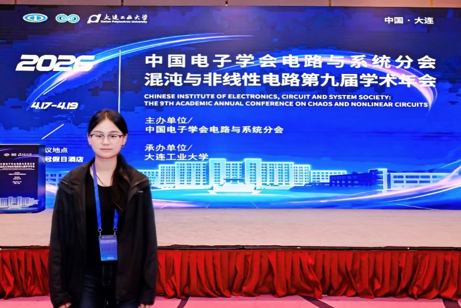 会议期间,周娇娇同学积极参与各分会场报告及专题研讨,聆听了来自国内外知名高校和科研院所的多位学者关于忆阻混沌电路、隐藏吸引子、多稳态系统及混沌保密通信等方向的最新研究进展,深入了解了当前领域的前沿动态与发展趋势。她还主动与多所高校的师生交流,就共同感兴趣的研究课题分享心得、碰撞思维,进一步拓宽了学术视野,明晰了后续研究方向,为下一步课题推进积累了宝贵的经验与素材。