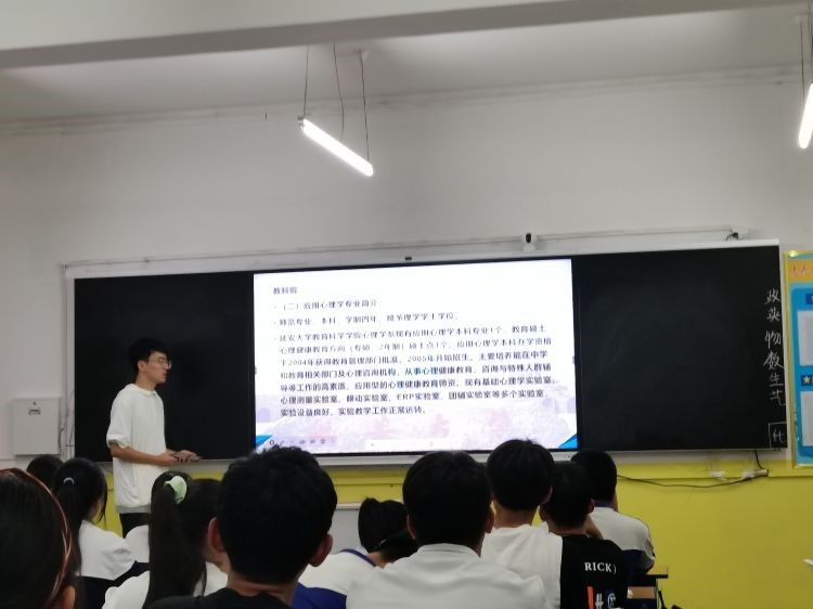 接着,分别由来自文学院的刘颜玉同学、化工学院的折文瑞同学、教科院的王黎明同学和体育学院的窦新丽对文学院、化工学院、教科院以及体育学院的相关专业以及历年分数线进行简单的介绍。