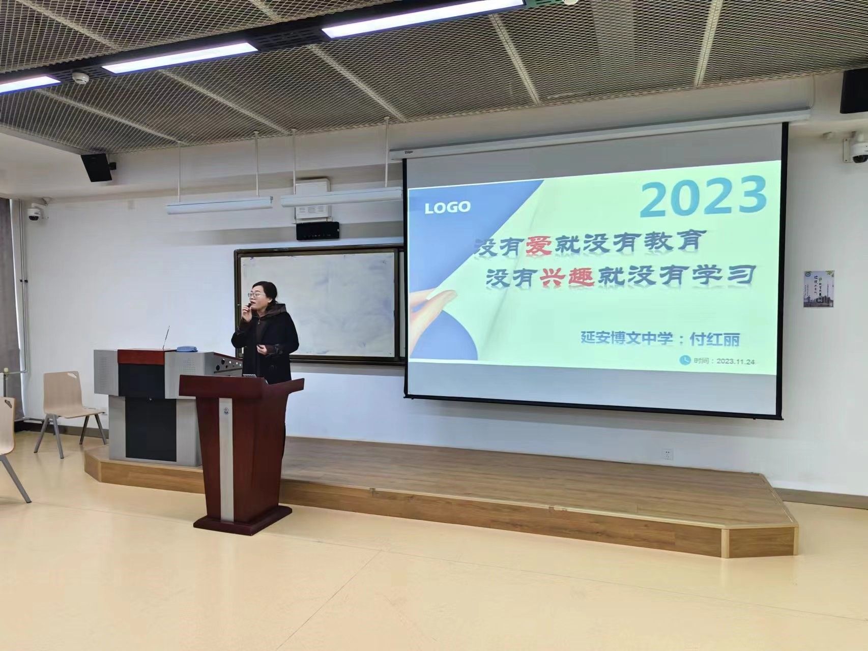 为了让教育见习的学生对师德认知和班级管理有更深刻的理解和认同,沁润教育情怀和立德树人理念,2023年11月24日下午,学院邀请博文中学付红丽副校长为22级全体同学做教育见习报告,马乐荣副院长、李向有主任和22级所有教育见习带队老师聆听了报告,李向有主持报告。