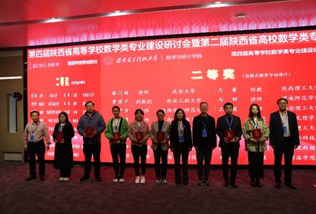 2024年11月2日,由陕西省高等学校教学指导委员会数理类工作委员会主办的第二届陕西省高校数学类专业课堂教学竞赛的颁奖典礼在西安电子科技大学顺利举行。我院教师再创佳绩,曹姝萍老师荣获竞赛特等奖、蔡川丽老师荣获竞赛二等奖。