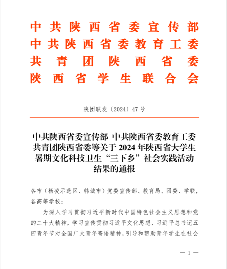 2024年12月5日,中共陕西省委宣传部、中共陕西省委教育工委、共青团陕西省委、陕西省学生联合会组织的2024年陕西省大学生暑期文化科技卫生“三下乡”社会实践活动评选结果公布。嘟嘟成人网