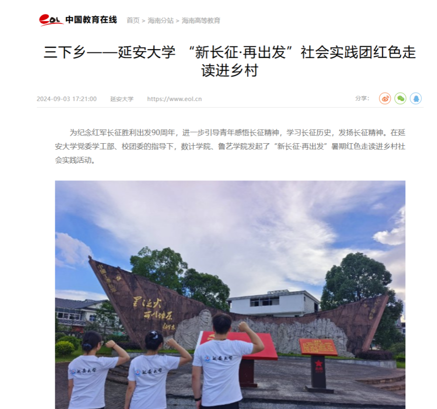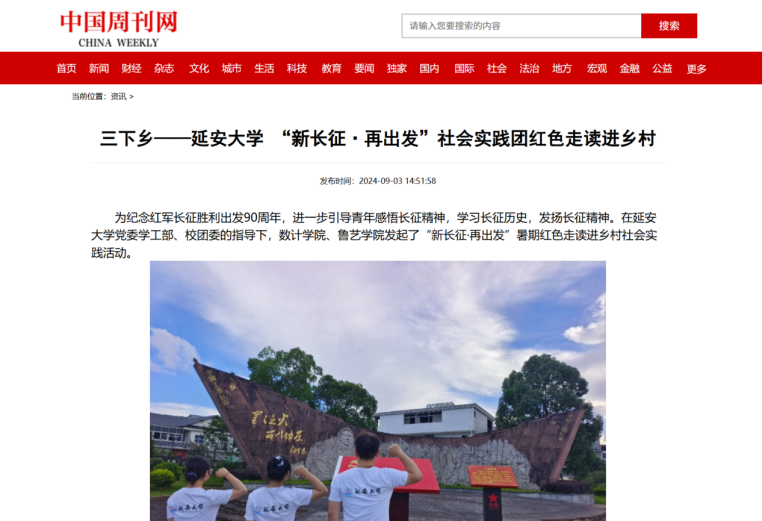 “新长征·再出发”红色走读实践团从全省2.4万支队伍中脱颖而出,进入评选前15名,荣获省级标兵团队称号。