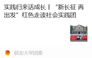 三是感悟中国共产党人的精神谱系的内在联系。红色走读的调研中“实事求是”、“调查研究”、“为民服务”等一系列思想理论有了紧密的历史联系。当同学们在延安聆听红军小战士张思德跟随毛主席从四川来到延安最后遗憾牺牲的故事时,中国共产党全心全意为人民服务的根本宗旨拥有了理论温度,实践团现实领会了中国共产党百余年来奋斗构建起的精神谱系间的内在联系。
