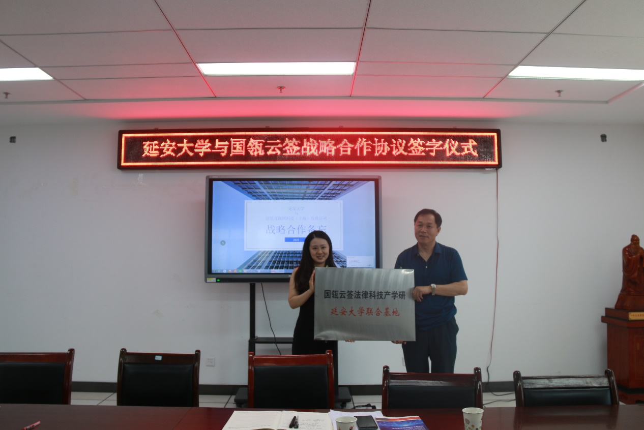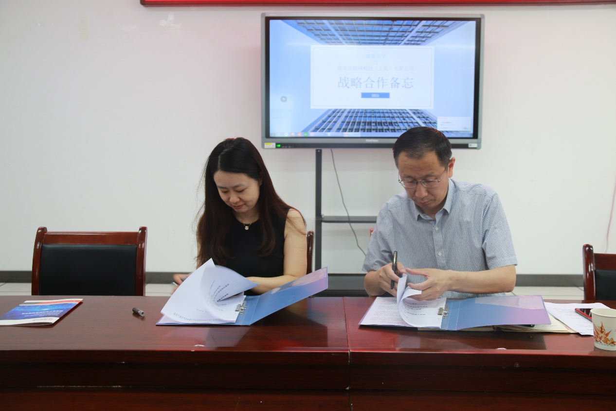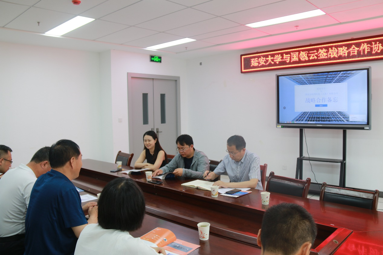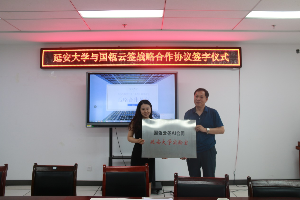 战略合作协议签字仪式在延安大学新校区信息大厦6楼数计学院会议室举行,出席签字仪式的有国瓴互联网科技(上海)有限公司-国瓴云签CEO吴玥姝女士、嘟嘟成人网