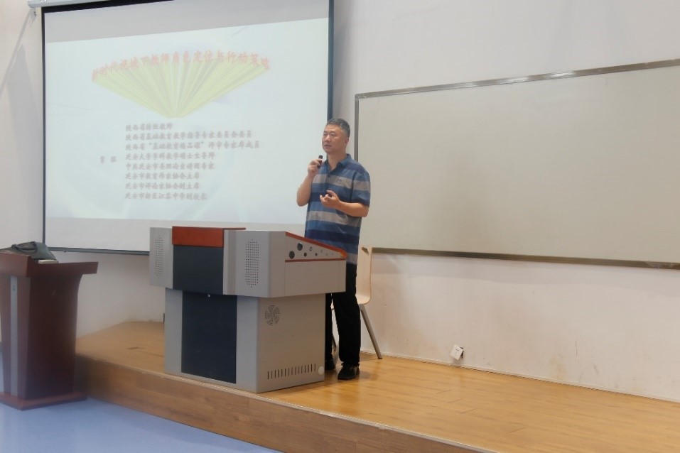 贾猛副校长从教育现代化的八大理念、未来教育变革五个趋势、教研活动的规律和要求、教师专业成长的有效途径、学校德育架构、班主任与科任教师的关系等六个方面对新时代教师角色的定位与行动策略进行了解读,并且结合自身教学与科研感悟,提出了许多独特的见解。贾校长的讲解既有理论高度,又结合实际事例,深入浅出,站位高,办法好,赢得同学们的阵阵掌声。