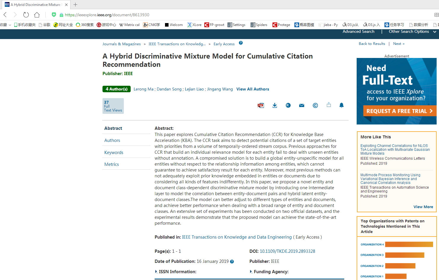 L. Ma, D. Song, L. Liao and J. Wang, "A Hybrid Discriminative Mixture Model for Cumulative Citation Recommendation," in IEEE Transactions on Knowledge and Data Engineering. doi: 10.1109/TKDE.2019.2893328
