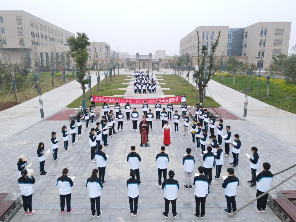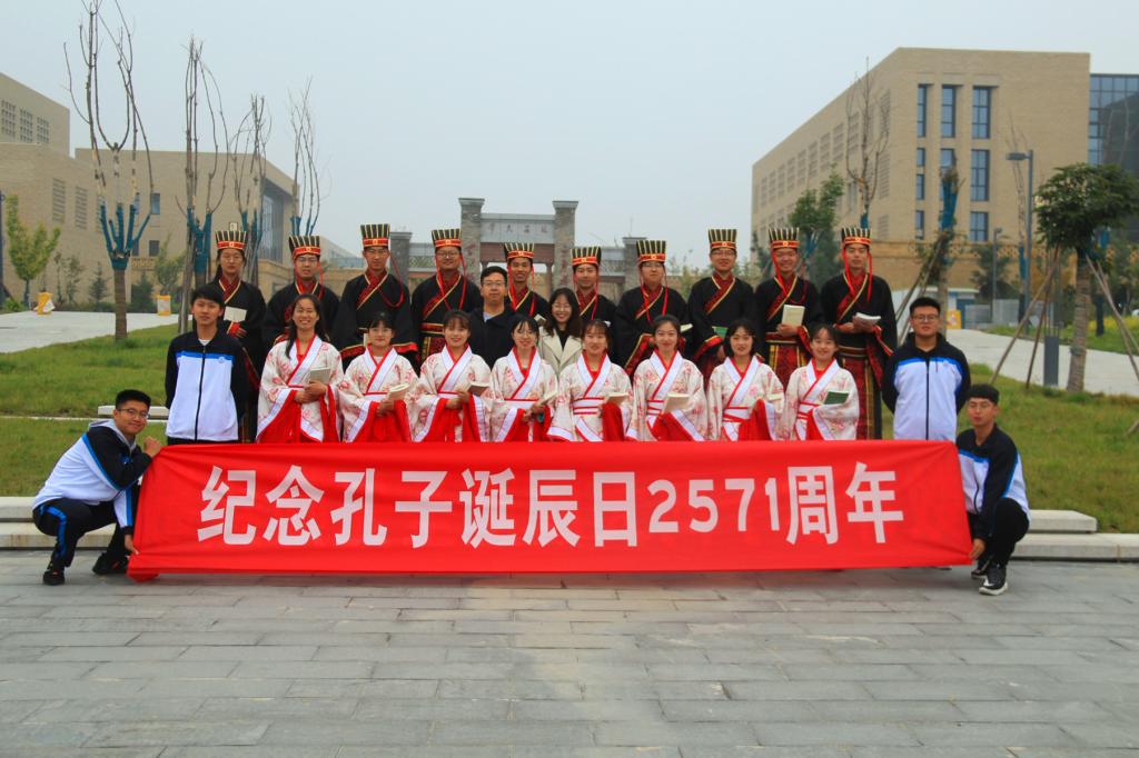在校园里组织2018、2019级同学共同参加了“纪念大成至圣先师孔子诞辰2571周年千人诵读活动”,以此来表达对伟大先贤孔子的怀念与敬仰。