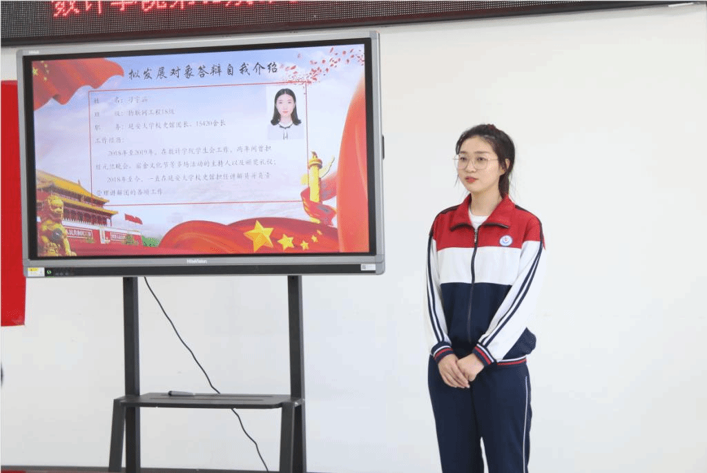 答辩分为自我阐述和评委提问两个环节。同学们利用答辩前精心准备的PPT进行自我介绍,客观地说出自己的任职以及获奖情况,之后对自己的党史学习情况及入党动机进行详细地阐述,并就如何发挥党员的模范作用提出了自己的见解,表明自己勇担青年使命的信心。答辩过程中,老师们对每位同学的答辩作出了评价和提问,充分肯定同学们在政治思想上的进步和入党决心的同时也指出同学们存在的一些不足,并提出建议及希望。同学们面对老师的提问紧紧围绕着入党动机、党性修养、党的性质、权利、义务、原则等基本知识和习近平重要讲话学习等时事热点问题进行回答