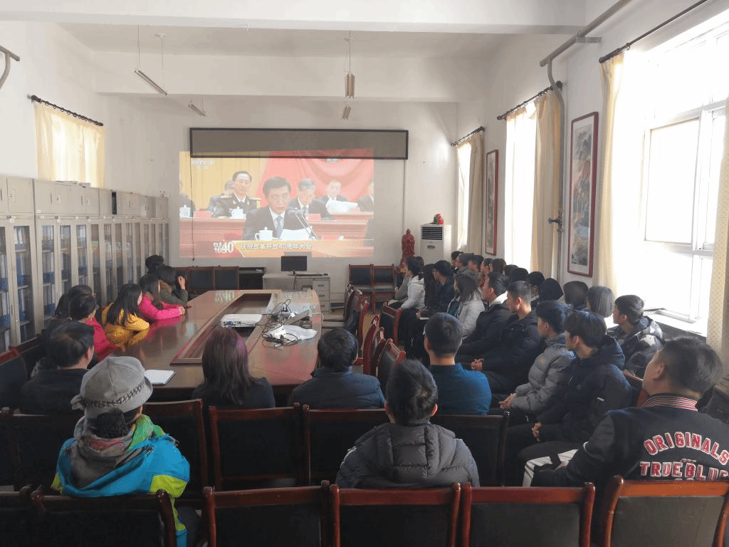 组织行政人员、教职工党员代表、学生党员代表、学生干部代表共70多人在学院会议室集中收看庆祝改革开放四十周年大会实况。