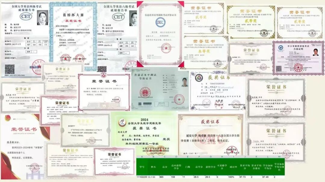 转折发生在大三。一次与学长的交流,点燃了她内心保研的火种。“他告诉我可以试一试。”尽管最初的方向是多参加竞赛、考取证书,但在实践中,她很快意识到,并非所有竞赛都对个人成长有实质性助益。她开始将目光聚焦于全国大学生数学建模大赛、全国大学生数学竞赛、蓝桥杯等认可度高的赛事,同时,一次与任课老师田原的深入交谈,为她推开了另一扇大门。