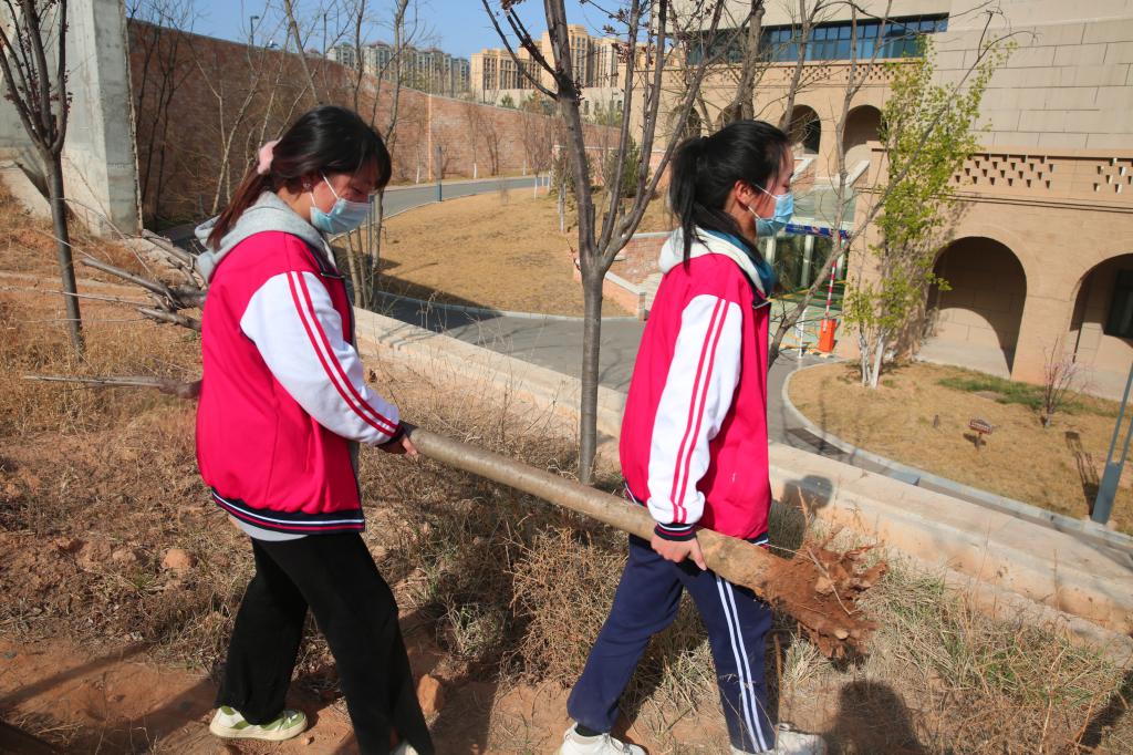 其间,我院第60期入党积极分子培训班全体学员挖树坑、清理枯树、种植碧桃树、浇水养护,参与学员270人次,劳动时间400余小时,新补栽碧桃130余棵。