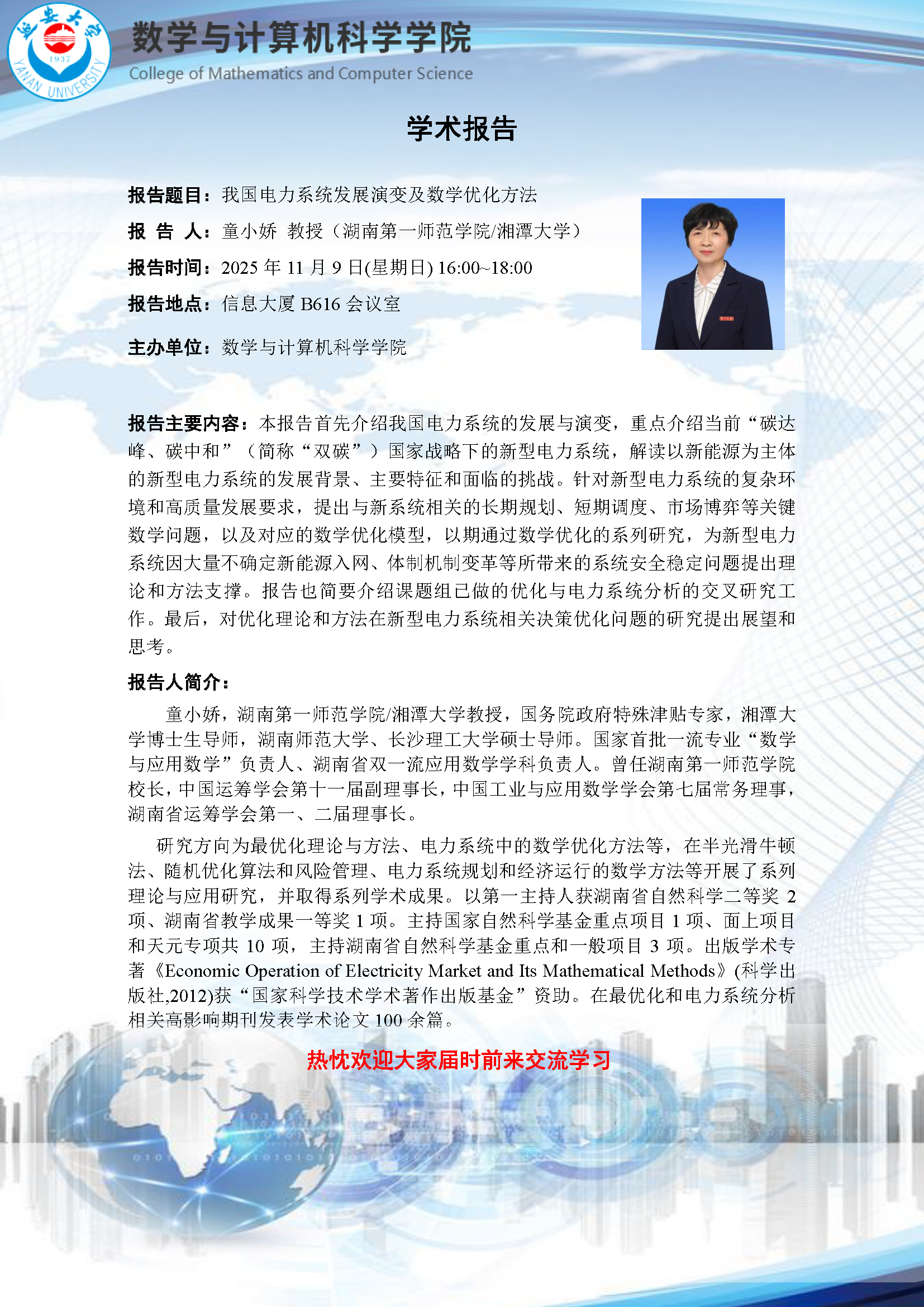 报告题目:我国电力系统发展演变及数学优化方法
