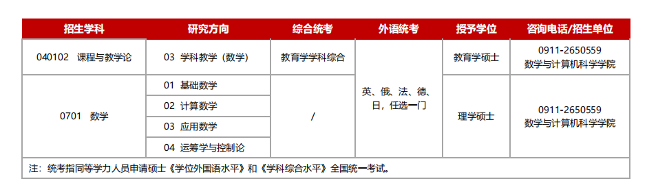 学院2026年拟招生190人,其中,学科教学(数学)60人、数学130人(最终招生人数以教育部和学校2026年下达计划为准)。