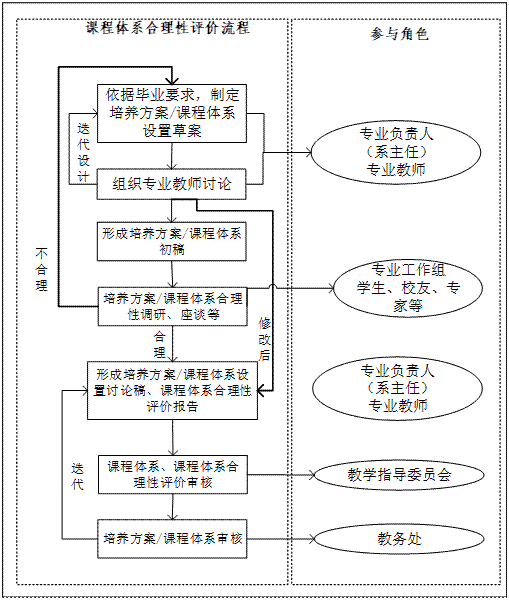 4. 教学指导委员会召开专门会议,邀请专家对专业提交的课程体系设置和合理性评价报告进行审核。若有不合理的课程设置,责成专业负责人进行修改。最终形成培养方案/课程体系第一稿。