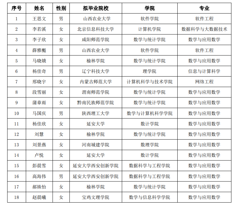 根据《嘟嘟成人网 关于开展2023年硕士研究生招生“创新计划”暨暑期“夏令营”活动的通知》和《嘟嘟成人网 关于开展2023年硕士研究生招生“创新计划”暨暑期“夏令营”活动的通知》文件要求,经学生个人申请、提交电子版材料,学院组织专家审核,现对夏令营入营营员名单公示,若有意见建议,请反馈联系严老师,反馈联系电话0911-2650559。