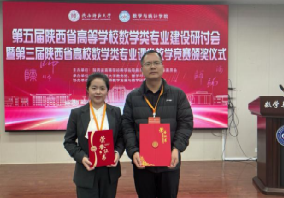 2025年12月7日,第三届陕西省高等学校数学类专业课堂教学竞赛颁奖仪式在陕西师范大学长安校区举行,我院青年教师王金妮、石美丽凭借深厚的专业素养、精湛的教学技艺和创新的教学设计脱颖而出,分别荣获特等奖与一等奖,学院以严谨的组织保障和优异的参赛成效获评“优秀组织奖”,为学校赢得了崇高荣誉。王金妮老师作为本次竞赛特等奖代表,受邀在颁奖仪式上进行了《调和级数》教学示范课展示,其生动的课堂呈现与新颖的教学设计获得在场专家与同行的高度认可。